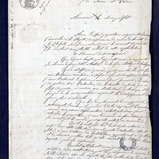 Ce document de quatre pages, daté de novembre 1844, et accompagné d’un plan aquarellé (voir compléments ci-dessous) a été transmis par Marc Teissier, propriétaire des houillères de la Chapelle-sous-Dun à la préfecture afin d’obtenir l’autorisation d’utiliser des chaudières et des machines à vapeur sur le site minier.