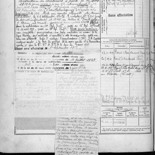 La page du registre matricule de Robert Fernier décrit l’ensemble du parcours militaire de cet appelé qui, à dix-neuf ans, doit interrompre ses études à l’Ecole des Beaux-Arts de Paris pour rejoindre le front.