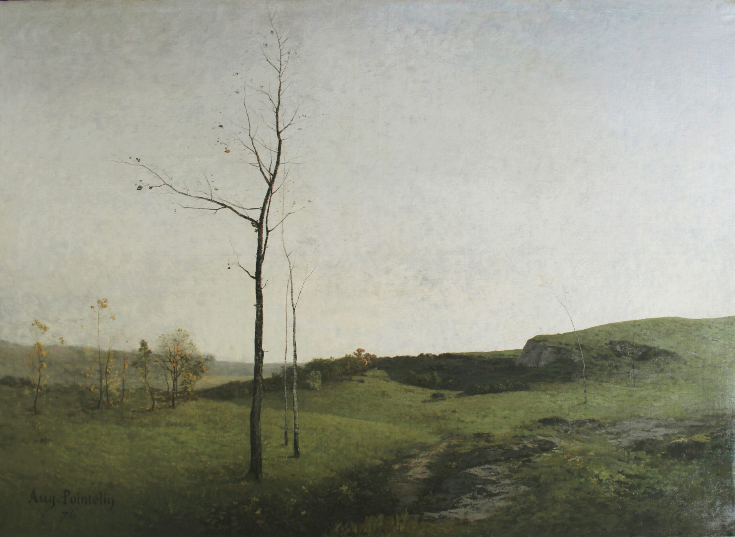 Né dans une famille de vignerons à Arbois, Auguste Pointelin (1839-1933) découvre sa vocation de peintre durant ses années de lycée, encouragé par son professeur de dessin, Victor Maire. Bien que ce peintre paysagiste jurassien préfère assurer sa subsistance en tant que professeur de mathématiques, d’abord dans le Nord puis au lycée Louis-le-Grand à Paris, il n’abandonne pas pour autant la peinture, exposant au Salon des artistes français dès 1866. C’est là qu’il rencontre Gustave Courbet, dont il apprécie le réalisme sobre.