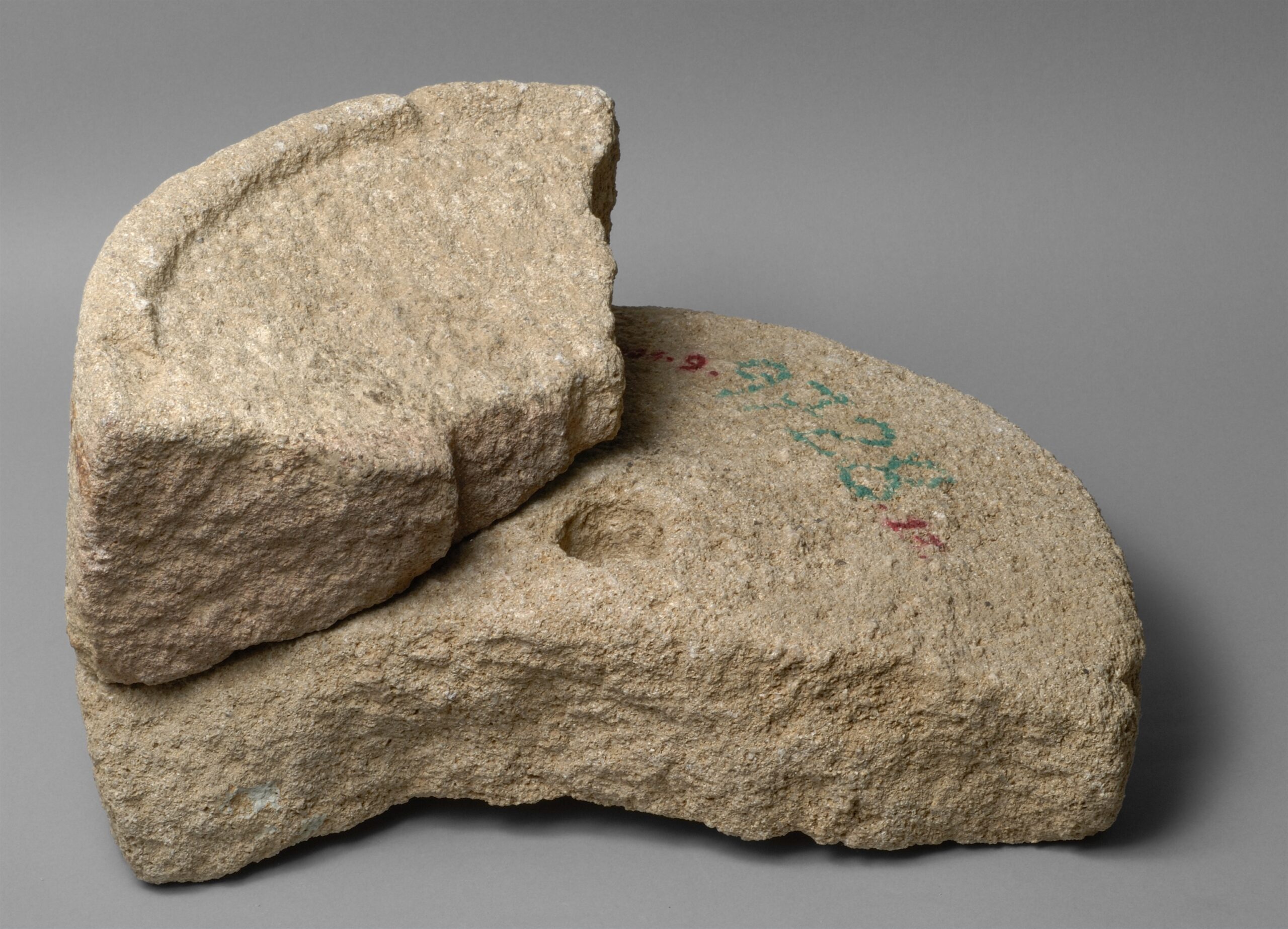 Cette meule (longueur 42 cm; largeur 30 cm; hauteur 24 cm) est un objet banal pour les Gaulois : elle permet de transformer les grains de céréales pour en faire de la farine, et ainsi pouvoir cuisiner des pains, des galettes ou épaissir des soupes, ainsi que brasser la cervoise. Les archéologues en ont trouvé des centaines sur le seul site de Bibracte, ce qui permet d’estimer que chaque famille possédait la sienne. C’est donc un instrument du quotidien, puisqu’une personne pouvait consommer jusqu’à 500 g de farine par jour !